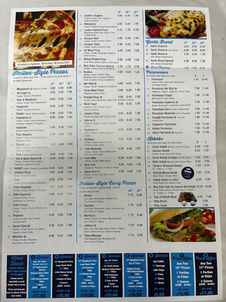 Nestled on Edenhill Road in Peterlee, New Eden Fish Inn is conveniently positioned for locals and visitors alike. The inviting atmosphere is perfect for a casual dining experience while you enjoy the diverse menu. The ownership has transformed this spot, bringing a fresh approach to classic takeaway dishes. The vibrant neighborhood community adds to the charm of the location. Patrons can enjoy the best of British fast food culture, including traditional fish and chips and modern twists such as curry pizzas, burgers, and wraps.